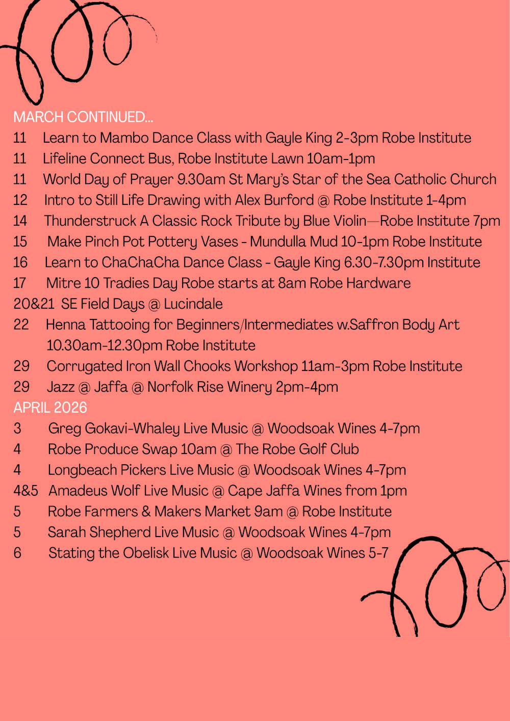 What’s Happening in Robe
